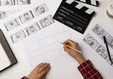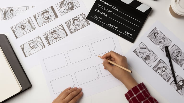 كتابة نصوص سينمائية، صناعة أفكار فريدة، بناء قصص بصرية جذابة، ورسم الستوري بورد الذي يحوّل الفكرة إلى رؤية واضحة قبل الإنتاج.